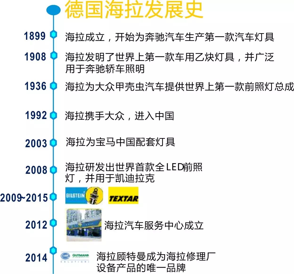 自1899年創立以來,德國海拉(HELLA)致力于提供創新的汽車科技、近乎完美的工藝水準和完善的技術服務體系。跨越三個世紀的海拉,以世界級的品質多次榮獲保時捷、寶馬、奧迪等國際頂尖車企“最佳合作伙伴”稱號,成就“德國品質”的非凡榮耀。